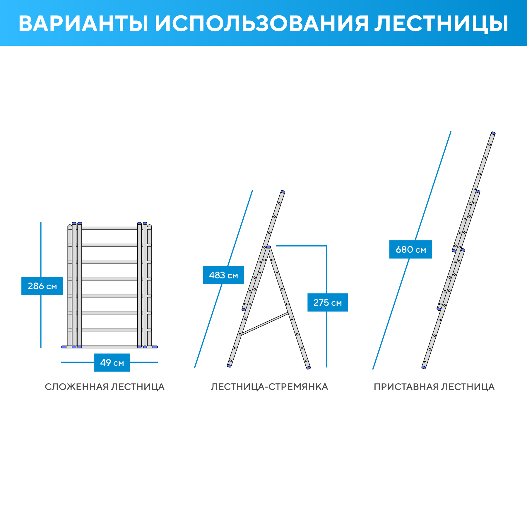 - Высота в положении "стремянка" - 2,75м;