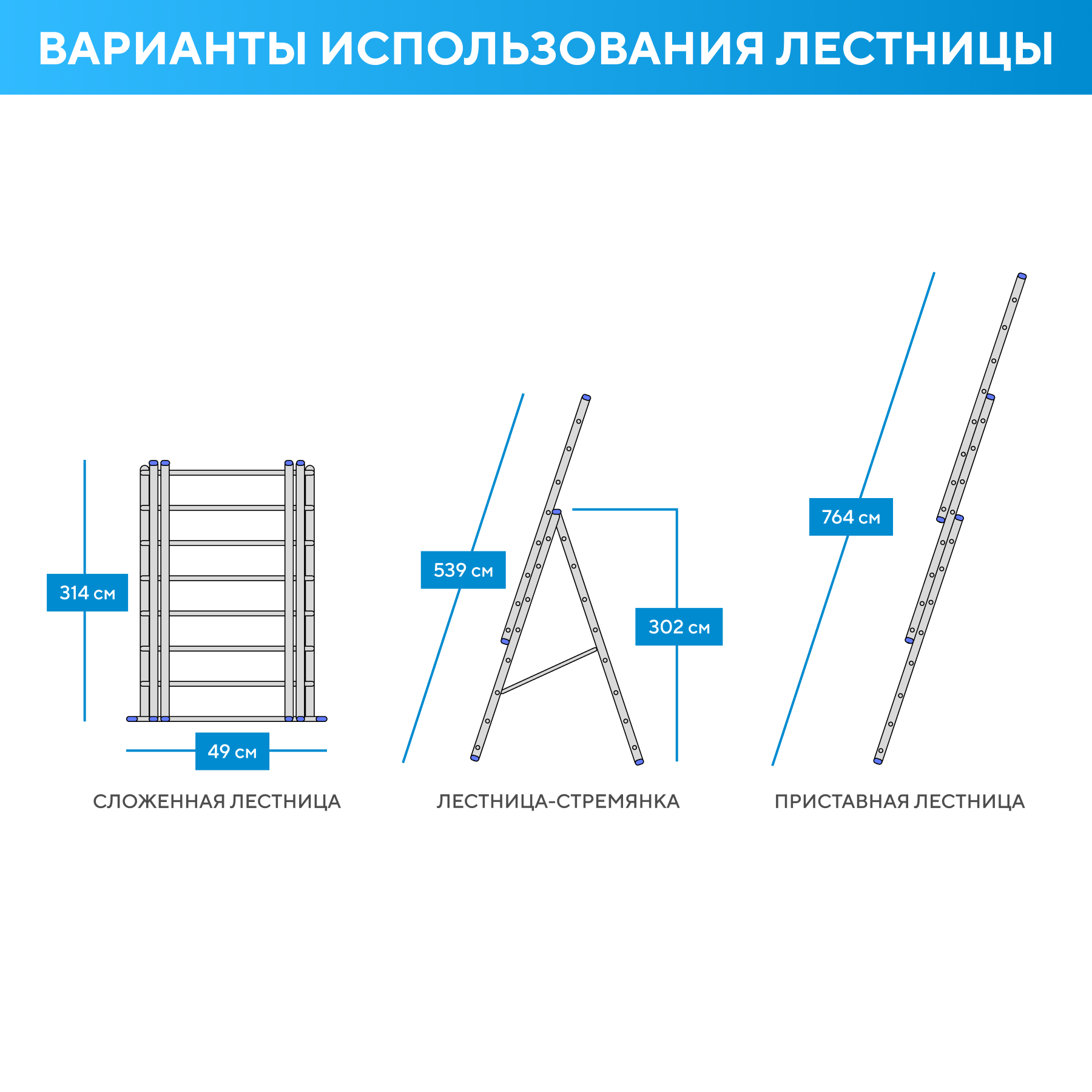 - Высота в положении "стремянка + выдвинутая вверх секция" - 5,39м;