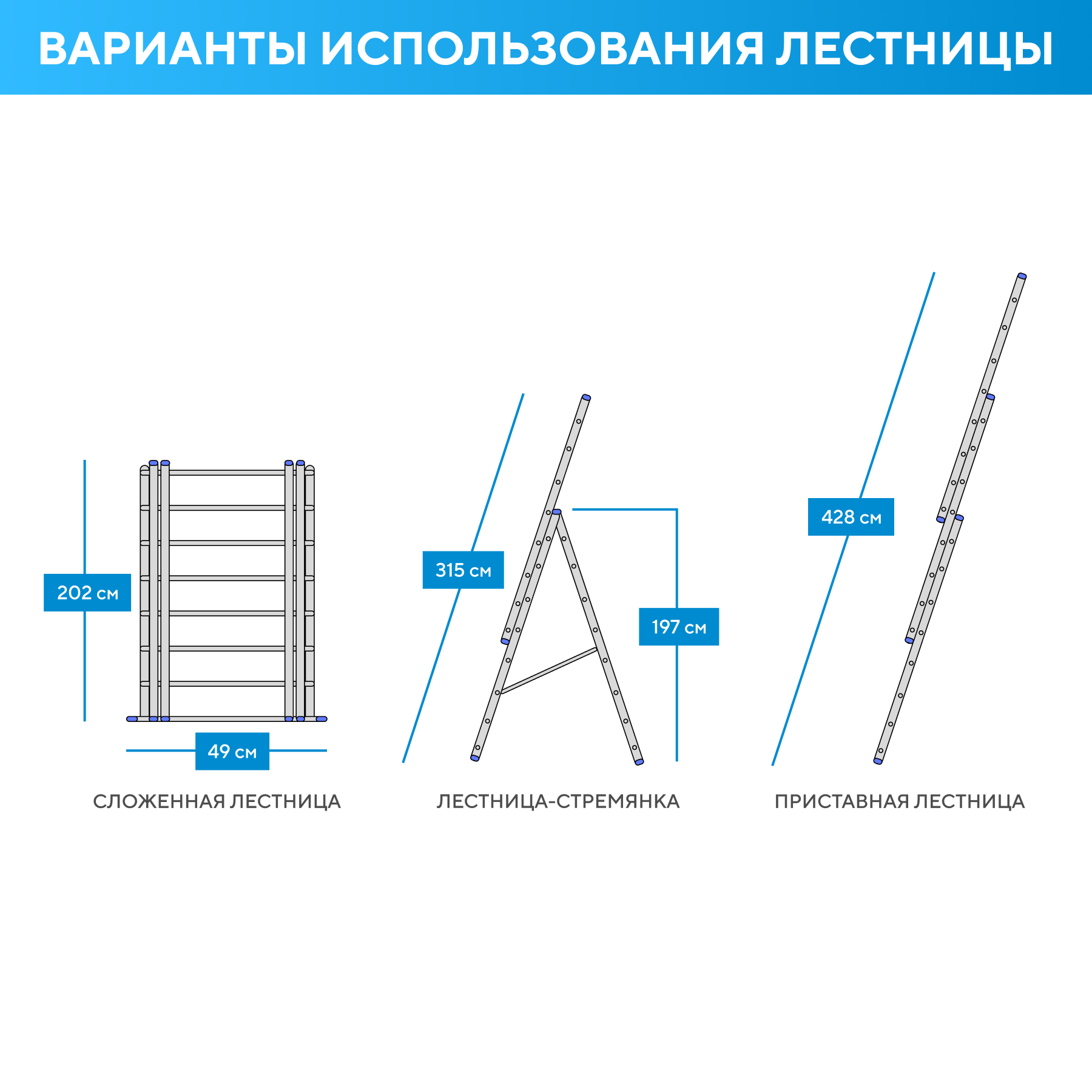 - Высота в положении "стремянка + выдвинутая вверх секция" - 3,15м;