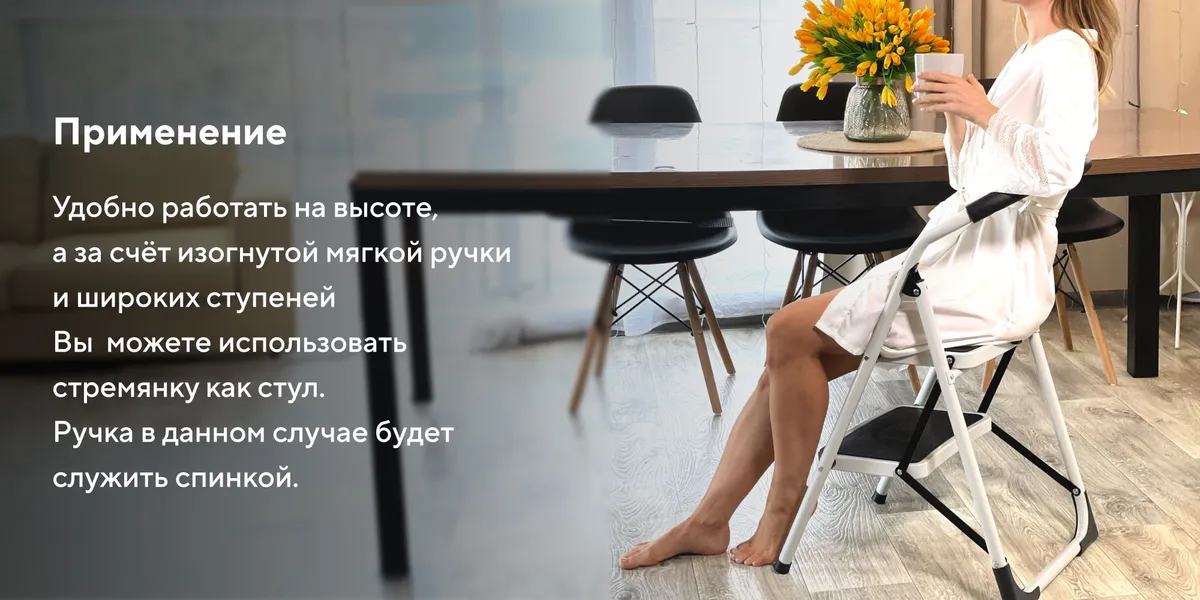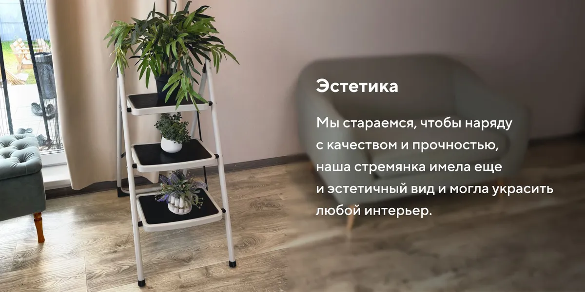 Помимо всех указанных технических положительных характеристик и преимуществ стоит отметить, что наша стремянка является очень стильным и изысканным предметом интерьера.