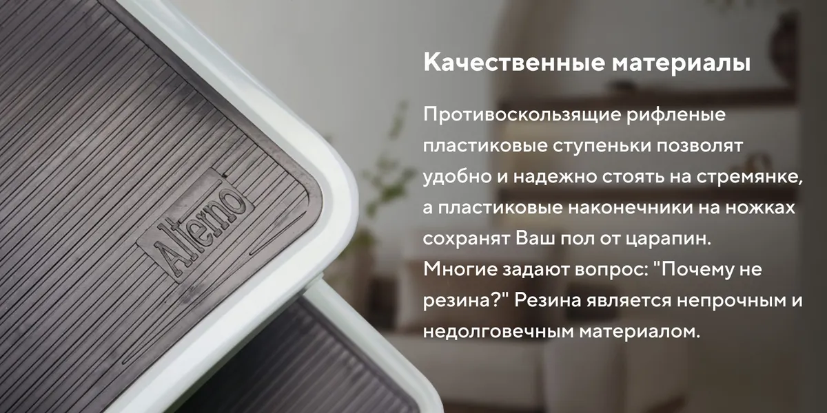 • Удобные широкие ступени, на которые можно встать полной ступнёй.