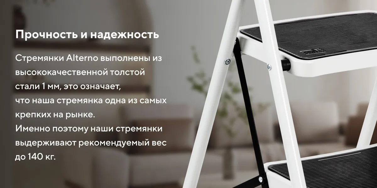 Наша стремянка Alterno одна из самых прочных и эстетичных на рынке лестницы.
